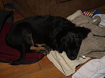 Nachts schläft Dario ruhig und tief. Er ist gerne mit seinen Menschen zusammen |