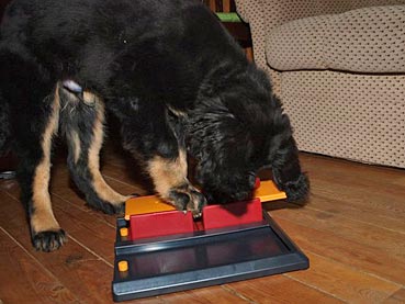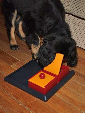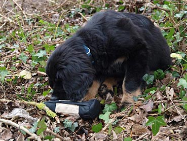 Dario interessiert sich für das Leckerchen, Er hat etwas entdeckt. |