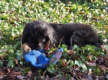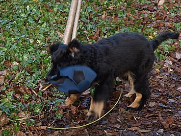 Der zerfetzte Ball ist und bleibt sein Lieblingsspielzeug draußen.