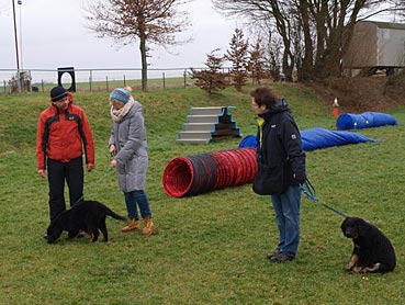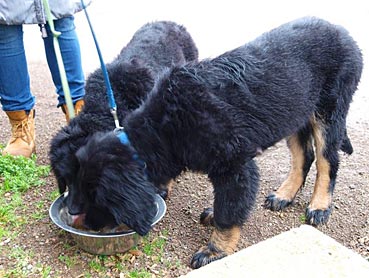 Zum ersten mal in der Welpengruppe der Hundeschule Saus in Eschweiler, Schwester Debby ist auch dabei. — Lernen macht durstig!