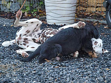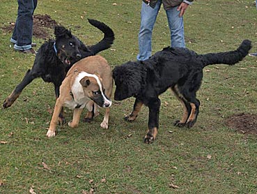 Pelle spielt gerne mit anderen Hunden - Größe ist egal |