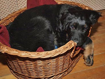 Noch kann Dario sich in den Katzenkorb kuscheln |