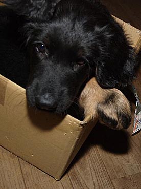 Das Highlight des Tages war ein Ausflug mit dem Fahrad im Anhänger! Dario war mit seinem Frauchen im Kindergarten und hat ganz viele nette Kinder kennen gelernt. Und auf einer Geburtstagsfeier mit ganz vielen Gästen war er auch schon. Der Trubel störte ihn überhaupt nicht.Er hat eine Runde ausgiebig geschnuppert, ein paar Krümmel aufgeleckt und sich dann hinters Sofa zum schlafen zurückgezogen |