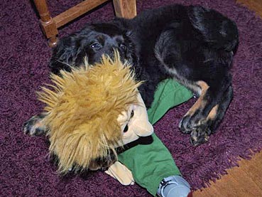 Auf diesem Teppich knabbert nun schon die dritte Hundegeneration ihre Leckerli ... ... oder spielt mit der Beute. |