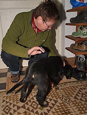 Die Fahrt hat Dario doch etwas gestresst, er hat meistens gehechelt und auch immer wieder gejault. Immer, wenn das Auto stand wurde er etwas ruhiger.