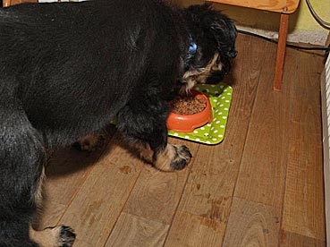 Minni ist schon mal am Hund vorbei zum Fressnapf stolziert.