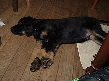 Ab und zu bleibt Dario einfach liegen, wenn seine Leute in einen anderen Raum gehen oder legt sich selber zum Schlafen wo anders hin.