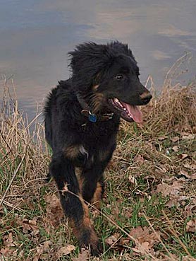 < Dario denkt nach ... Er rennt inzwischen im Uferbereich durchs Flachwasser. |
