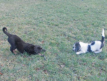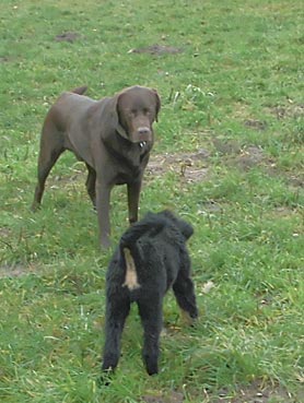 Dort traf ich auf zwei Rüden die schon soooo viel größer und 6 Wochen älter waren als ich...