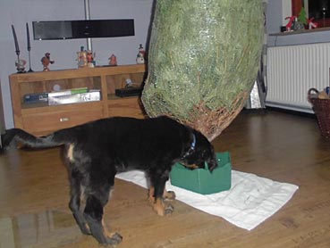 Einige Zeit später, was ist DAS? Ein Baum, für mich, in meinem Wohnzimmer? Pinkeln?