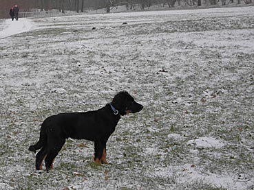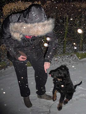 Ich wollte nicht, mir war doch so kalt an der Nase, Herrchen jedoch blieb hartnäckig!
