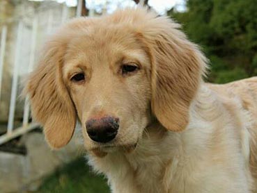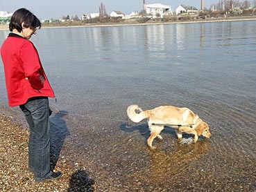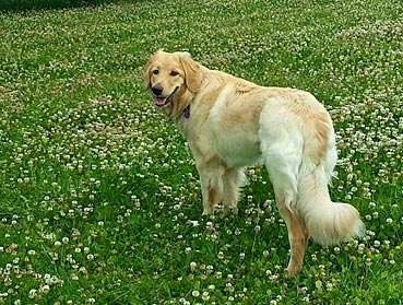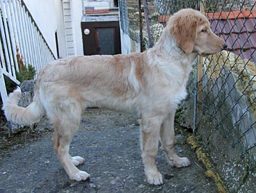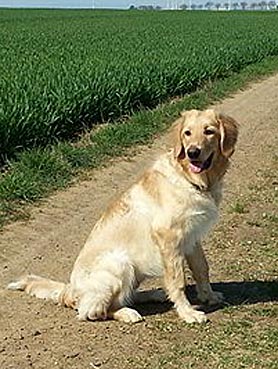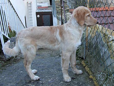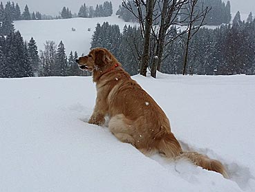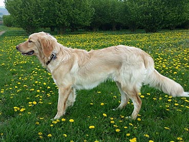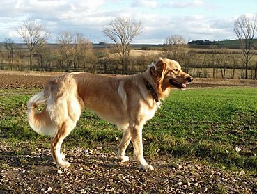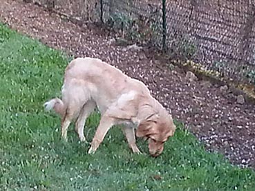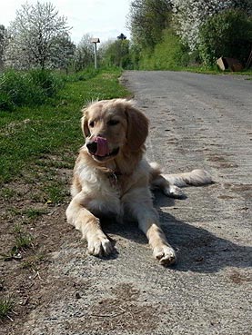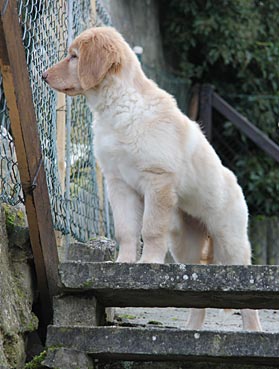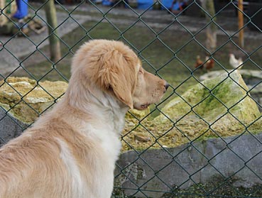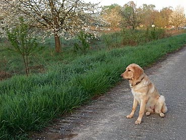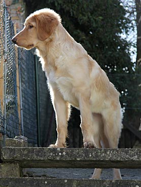 Delphi schaut auf das Nachbargrundstück (das liegt 2 m tiefer). > Da sind Hühner und Gänse - mit denen möchte sie gerne spielen ;-)) . |