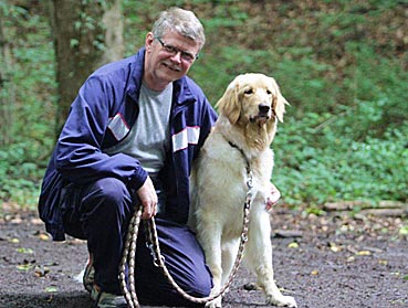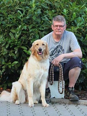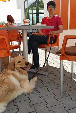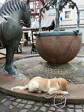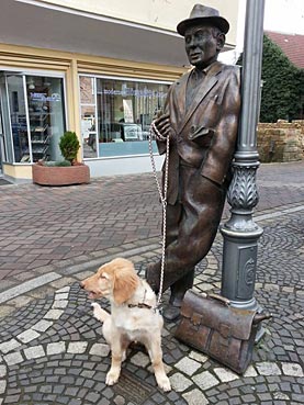 Delphi beim Leckerkchen erarbeiten und beim Stadtrundgang in Alzey