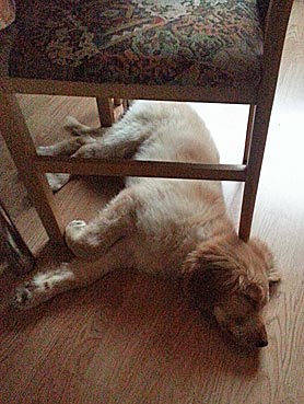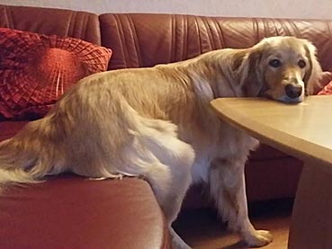 Delphi's Lieblingsplatz dort kann man die Hühner im Nachbargarten beobachten |