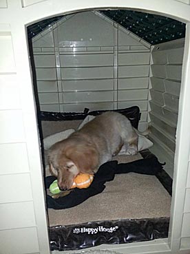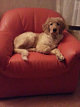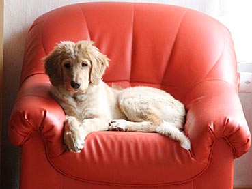 Im Wohnzimmer hat sie einen eigenen Sessel und sogar ein Hundehaus.