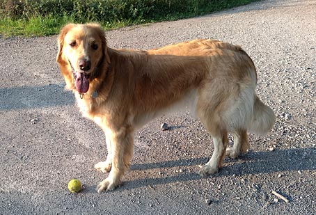 Zu Hause im Garten dreht sie natürlich gleich auf, wenn Herrchen oder