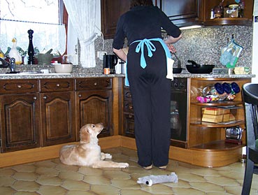 Frauchen und Distel beim Kochen