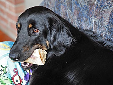 "Als ich hier ankam, habe ich den noch angetroffenen Besuch aufgeschlossen beschnuppert. Auch die Oma und ihre Wohnung habe ich schon kennen gelernt. Die Nachbarn waren auch ganz lieb zu mir.