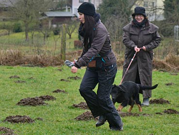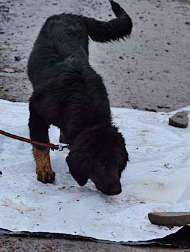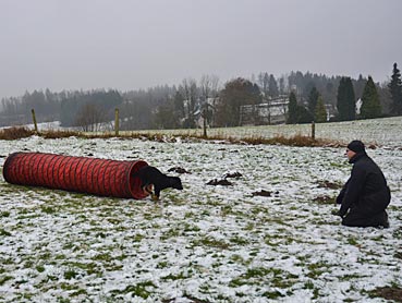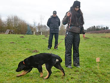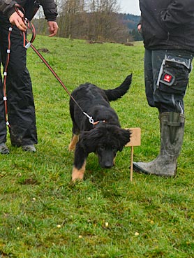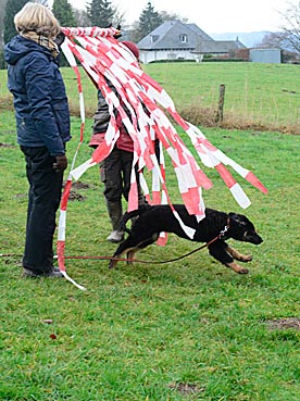 Diva verlässt das Fährtenquadrat ... ... sie lernt: die Leckerchen gibt es nur dort, |