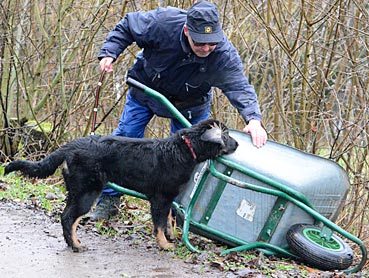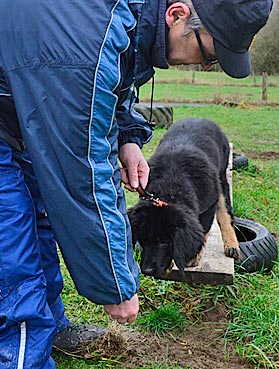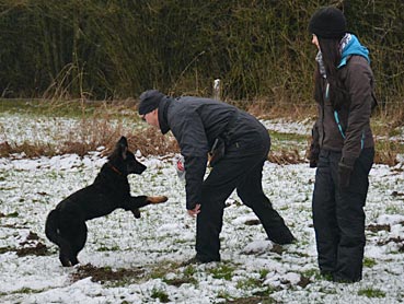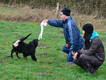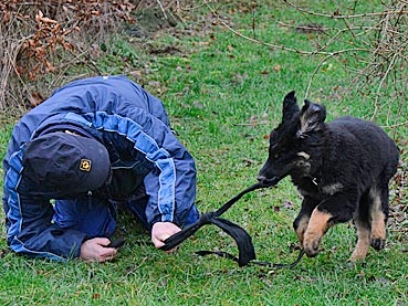 ... auf Ruf kommt Diva sofort angerannt ... ... und wird mit einem Zerrspiel belohnt. |