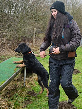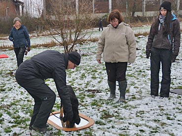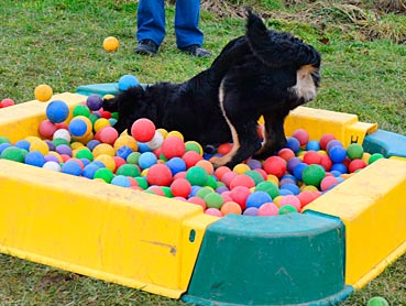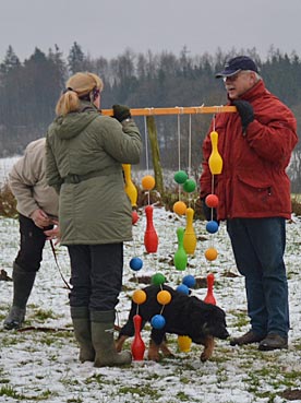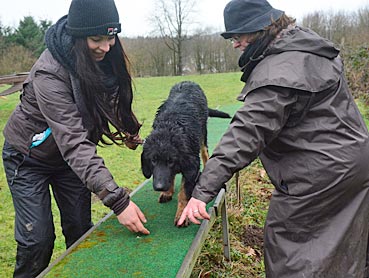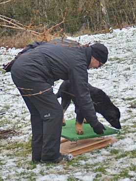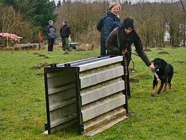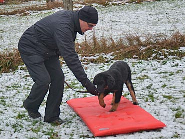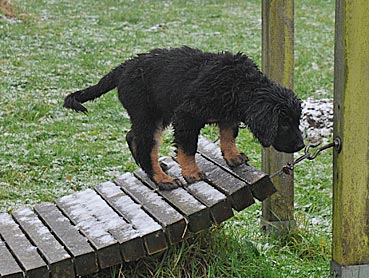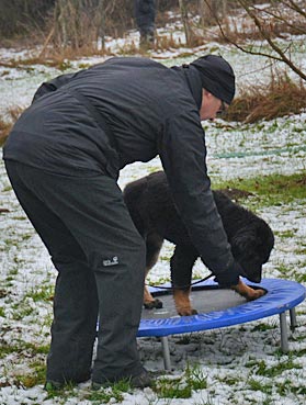 Die 2. Welpenspielstunde Nach dem ersten Spiel standen Balancierübungen auf dem Programm. |