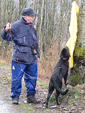 Im Fährtenquadrat findet Diva |