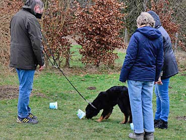 Statt dessen durften die Welpen wieder Leckerchen unter den Yoghurt-Bechern suchen.