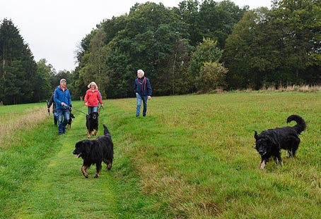 Nach einer kurzen Begrüßung sind wir gleich zu einem kleinen Spaziergang aufgebrochen, damit die Hunde nach der langen Anfahrt erst mal etwas Bewegung bekommen. Der Wetterbericht hatte Regen angesagt, aber das Wetter meinte es gut mit uns. Keine Sonne, aber auch kein Tropfen Regen.