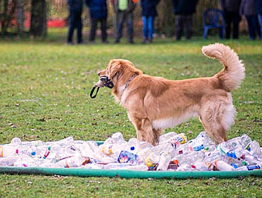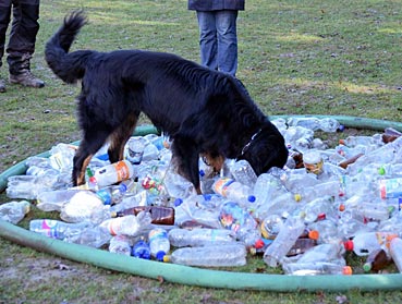 Die Plastikflaschen fand er so toll, dass er sich samt Beute noch mal mitten rein legte.