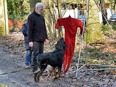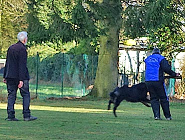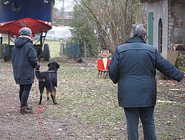 Dario verhält sich bei der Erscheinungsbildbeurteilung problemlos. Er spielt ausgeprägt mit gutem Kontakt zum Hundeführer und holt den Spielgegenstand direkt. Auch beim Helfer zeigt er ausgeprägten Beutetrieb und spielt ausgeprägt mit gutem Kontakt. Die Menschengruppe umkreist er kurz und kommt zum Hundeführer. Beim Overall verhält er sich ausweichend und nimmt zögernd Kontakt auf. Bei der Kette ist er ausweichend interessiert und nimmt problemlos Kontakt auf. Gegenüber dem "Pilzesammler" weicht er kurz aus, die Annäherung ist problemlos. Am Schlitten weicht er bei Annäherung aus, bleibt vor dem Hundeführer und zeigt Konfliktverhalten. Bei Kontaktaufnahme mit dem Schlitten weicht er erst aus, nimmt dann aber problemlos Kontakt auf. Beim Schuss bleibt er unbeeindruckt. Nach den Belastungen spielt er ausgeprägt und mit gutem Kontakt zum Hundeführer. Er hat ruhiges Temperament.