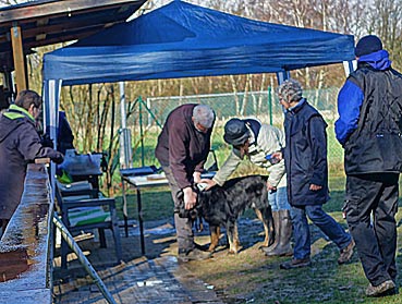 Chipkontrolle Messen der Rumpflänge mit dem Körmaß |