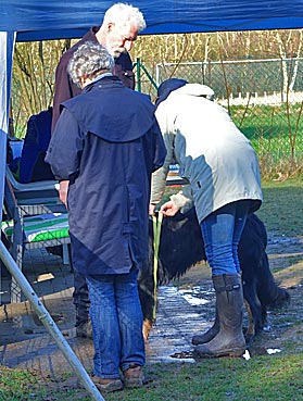Messen der Widerristhöhe mit dem Körmaß Messen des Brustumfangs |