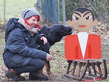 Am "Schlitten" verhält er sich interessiert beobachtend und freundlich. Er nimmt unbefangen und ohne Hilfe Kontakt zum Schlitten auf.