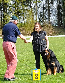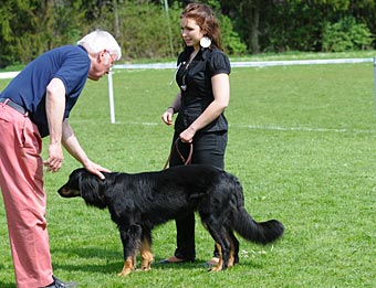 Bei der Clubsiegerschau des Belgischen Hovawartclub am 28. 05. 2007 in Brasschaat Er hat einen guten Kopf und ein sehr schönes Haarkleid mit ausgeprägten, sehr schön abgegrenzten Marken. |