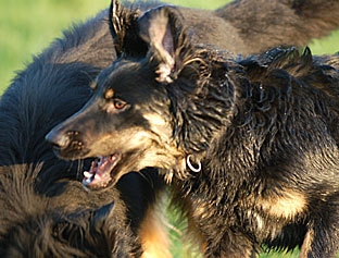 Ab und zu (selten) lassen wir die Hunde jetzt gemeinsam laufen. Dabei achten wir darauf, dass Carla nicht überlastet wird. Mehr als eine Toberunde lassen wir pro Spaziergang nicht zu.