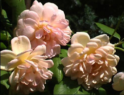 rechts Perle d'or / Yellow Cécile Brunner, 1883, eine nachblühende China-Rose, die 2-3 m hoch werden kann.