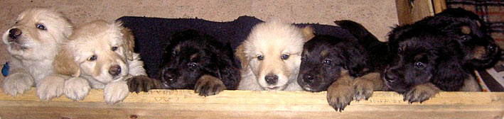 Am 3. Mai 2005 ist Helos zum ersten Mal Vater geworden. Deike vom Lamershof hat 8 gesunde Welpen geworfen: Es ist der J-Wurf "vom Lamershof" mit 2 sm-Hündinnen, 5 sm-Rüden und 1 blondem Rüde. | |
