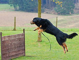 - Sprünge sind auf jeweils einen (evtl. Hin- und Rücksprung) pro Prüfung beschränkt, der auf Schulterhöhe des Hundes eingestellt wird.