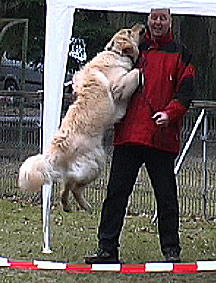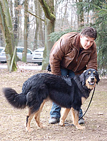 Er ist ein Rüde vom derben Typ mit stark gewelltem Haarkleid und ruhigem Temperament.