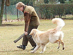 Jule, eine Hündin vom derben Typ, war immer zu einem ausgelassenen Beutespiel bereit.