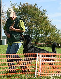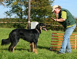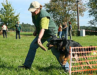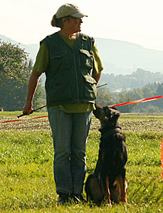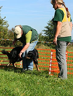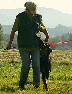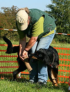 Natürlich standen auch einige "Trockenübungen" ohne Hund auf dem Programm, bei denen die Hundeführer z.B. das richtige Gehen der Winkel und Wendungen übten. Und den Abschluss bildeten Apportierübungen, die an einigen Hunden mit unterschiedlichem Ausbildungsstand gezeigt wurden.