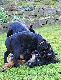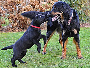 Carla wird die Beute streitig gemacht. Bellend fordert sie ihre Herausgabe.