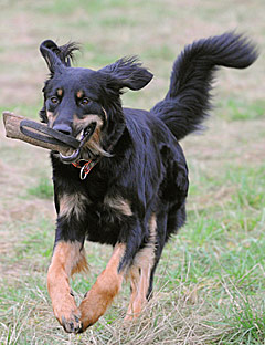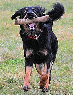 Vielleicht können Sie auch einen Nachbarn bitten, sich als Trainingsobjekt zur Verfügung zu stellen? Wenn der Nachbar am Zaun erscheint und der Hund schlägt an, gehen Sie an den Zaun und begrüßen den Nachbarn betont freundlich und halten Sie einen kleinen Plausch. Sobald der Hund ruhig ist, kann der Nachbar weiter gehen, nicht vorher. Wenn der Hund sich nicht beruhigt, verbieten Sie ihm das "Wort" z.B. mit dem Hörzeichen "Still!", nehmen sie dabei eine angespannte Körperhaltung ein und schauen Sie den Hund scharf an, gehen Sie ruhig auch drohend einen Schritt auf den Hund zu, um dem Ganzen Nachdruck zu verleihen. Sprechen Sie dabei ganz ruhig und gelassen und versuchen Sie auf keinen Fall, den Hund zu übertönen. Gibt er keine Ruhe, schicken Sie ihn weg oder gehen Sie zusammen mit ihm ins Haus zurück. So zeigen Sie ihm, dass Sie die Situation als ungefährlich einstufen. Der Nachbar sollte aber noch etwas am Zaun stehen bleiben, bis Sie mit Hund im Haus verschwunden sind, damit der Hund nicht den Eindruck bekommen kann, er hätte den Fremden vertrieben.