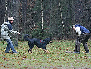 Ein erstes Antesten mit dem Lappen und Ringhetze - Carla staunt, so etwas kannte sie noch nicht.