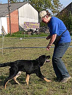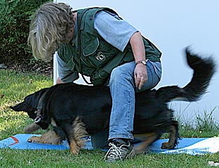 rechts: Erstvermittlung des "Sitz" über Körpersprache > |