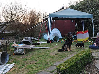 Tagsüber dürfen die Welpen selbst entscheiden, ob sie im Welpenraum, im Wintergarten oder auf ihrem Abenteuerspielplatz sein wollen. Nachts kommen sie dann wieder zurück in den Schutz von Haus und Wintergarten. Nach und nach werden die Welpen nun in angemessen kleinen Schritten an die Dinge des Lebens herangeführt. Wir bieten ihnen immer neue kleine Umweltreize, die zu einer guten Entwicklung beitragen sollen. Sie können Frusttoleranz entwickeln und eigene Erfahrungen machen: was geht und wie's geht; sie lernen, dass sie durch eigene Aktivität etwas bewirken können. |